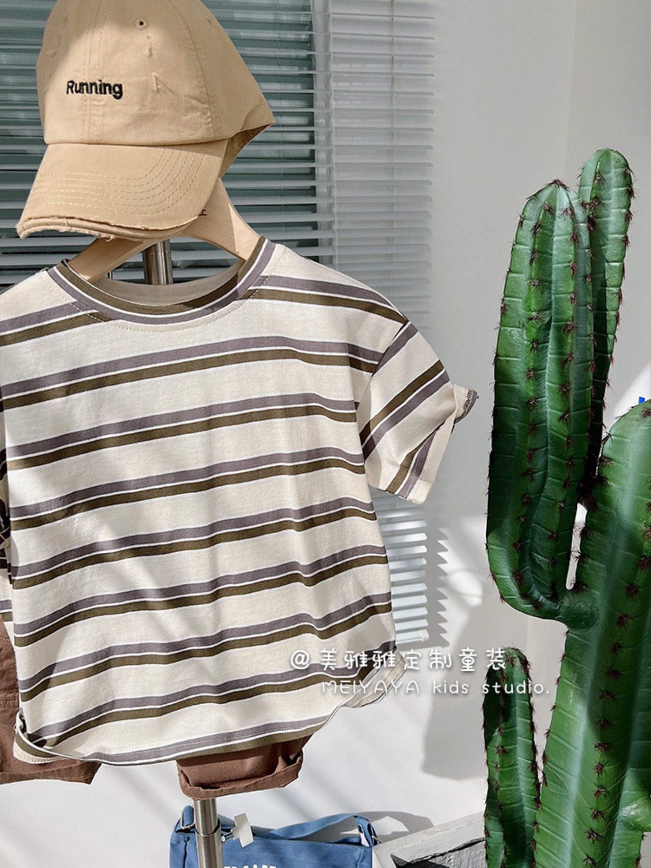ストライプTシャツ サマー レッド コットン 夏物 4/12 春夏 SS 子供服 韓国風 mi0653845443924