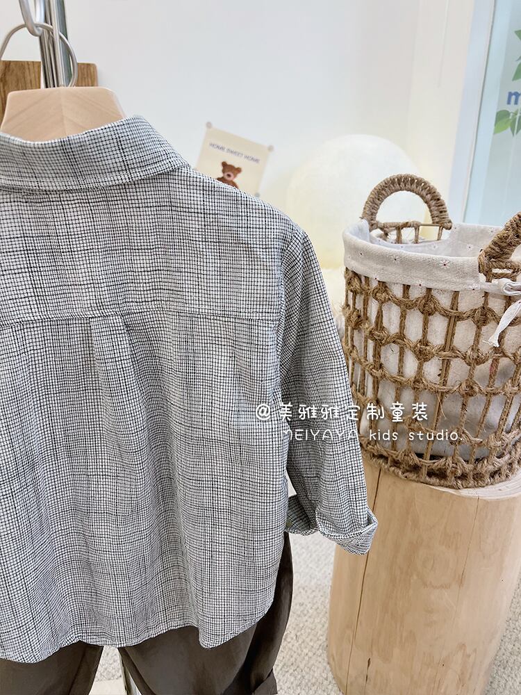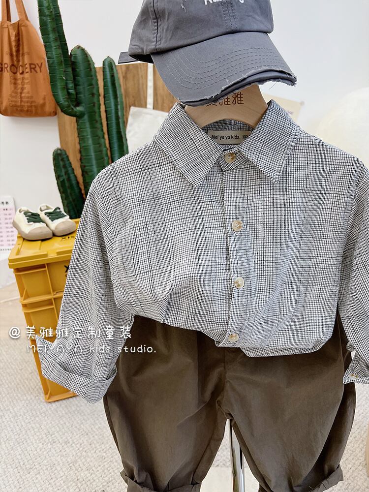 サマーグレー格子柄シャツ トップス カーディガン 夏物 4/12 春夏 SS 子供服 韓国風 mi0677613803992