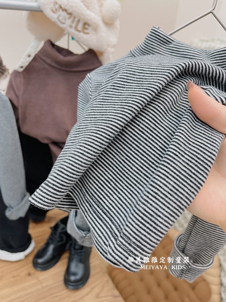 スプリングTシャツ シャツ ストライプベルベット ロング 春物 4/12 春夏 SS 子供服 韓国風 mi0621425988591