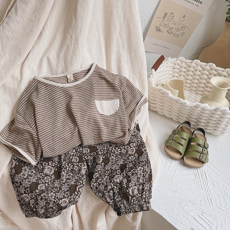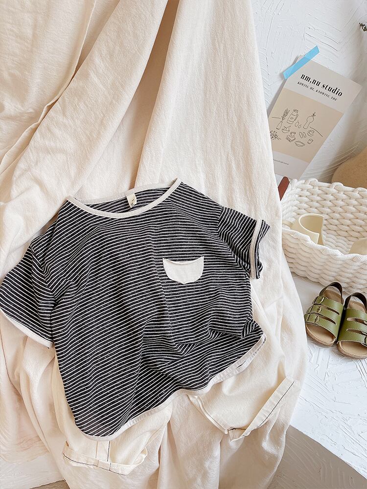薄手サマーポケットストライプシャツ ルーズプルオーバー Tシャツ 夏物 4/12 春夏 SS 子供服 韓国風 mi066514023324