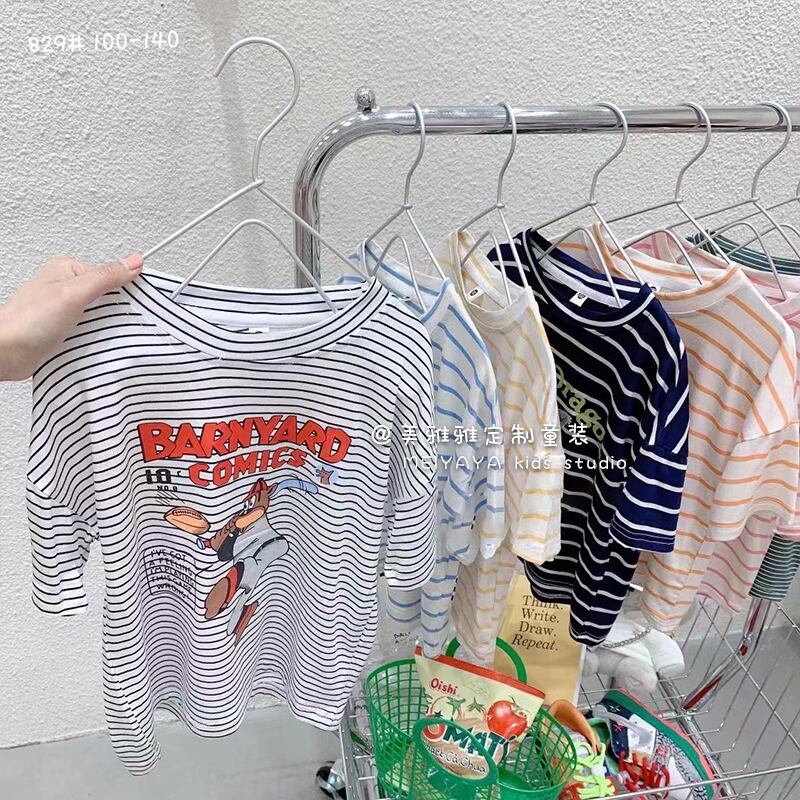 サマーストライプブラックホワイトTシャツ 夏物 4/12 春夏 SS 子供服 韓国風 mi0641307489880