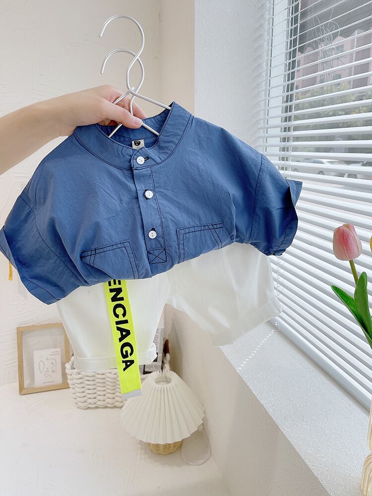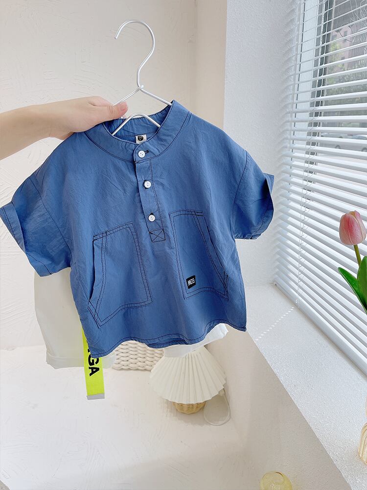 スタンダードブルーカラーTシャツ ルーズソリッド トップス レトロ ソリッドカラー 4/12 春夏 SS 子供服 韓国風 mi061577640918