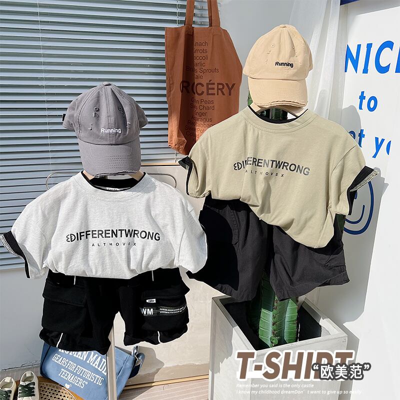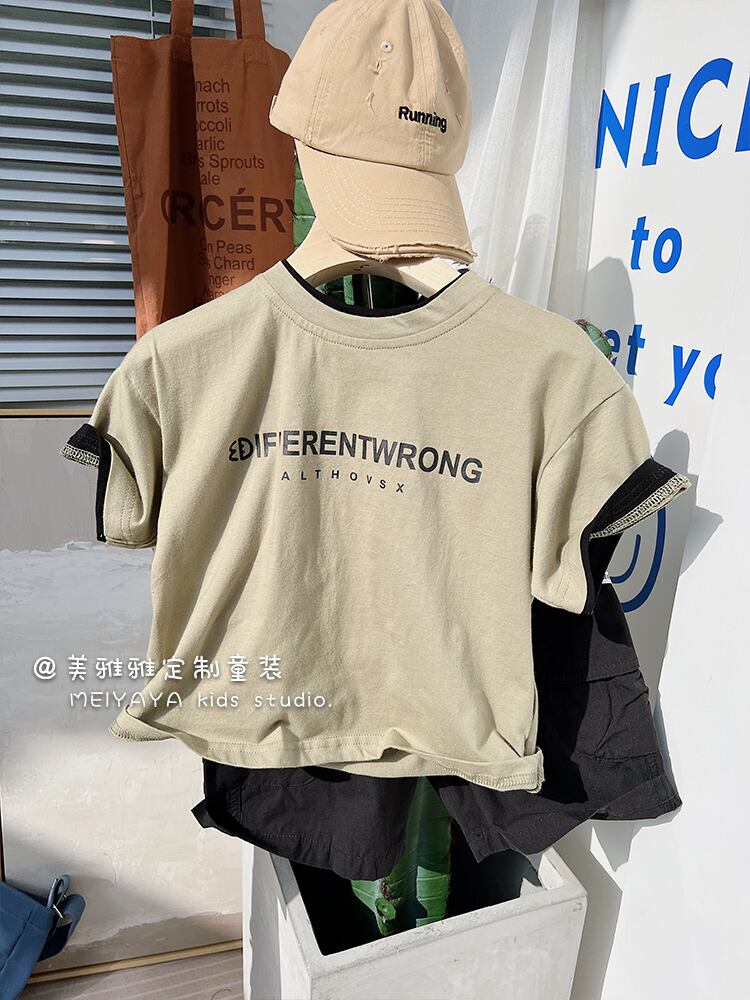 ミニマリストスタイルサマーカラースタンダードグリーンTシャツ レトロ 夏物 4/12 春夏 SS 子供服 韓国風 mi0652583264886