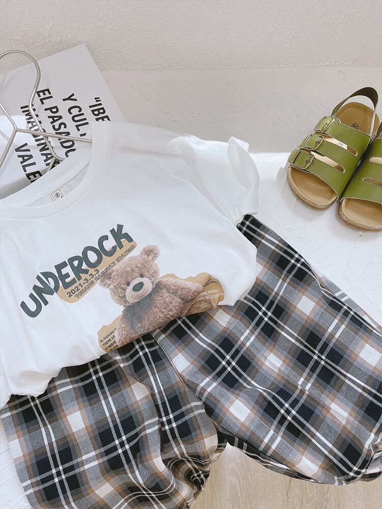 サマースプリングTシャツ 格子柄 春物 夏物 ショーツ ブルマー 4/12 春夏 SS 子供服 韓国風 mi0648989583461
