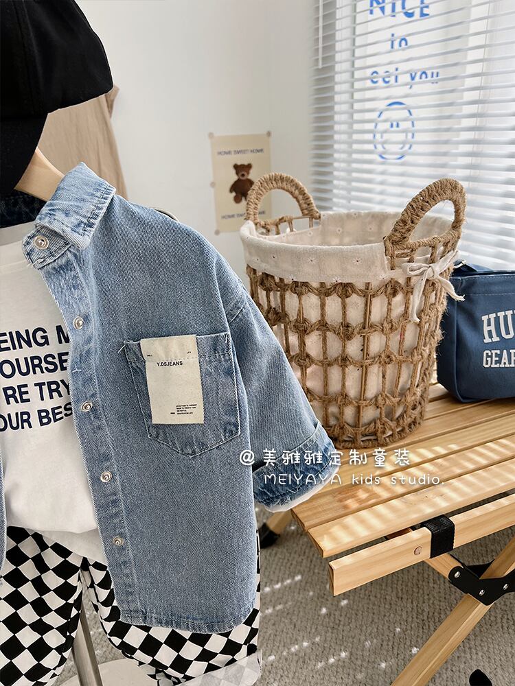 スプリングブルーシャツ ポケットトップス 春物 4/12 春夏 SS 子供服 韓国風 mi062467060988