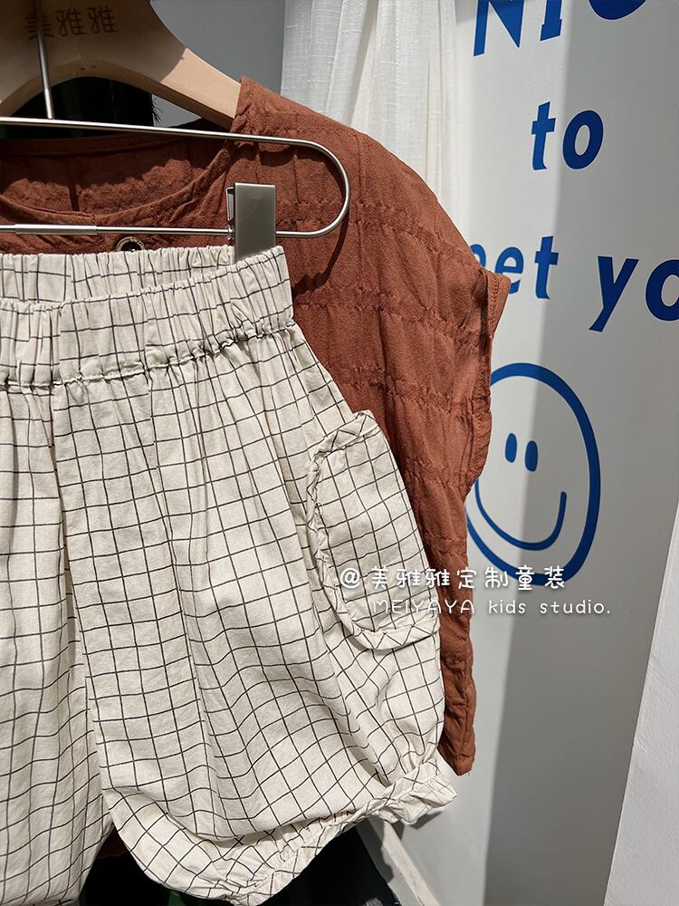 サマーサイドポケット格子柄ショーツ 薄手ルーズパンツ 夏物 ビーチ ブルマー 4/12 春夏 SS 子供服 韓国風 mi0628944882268