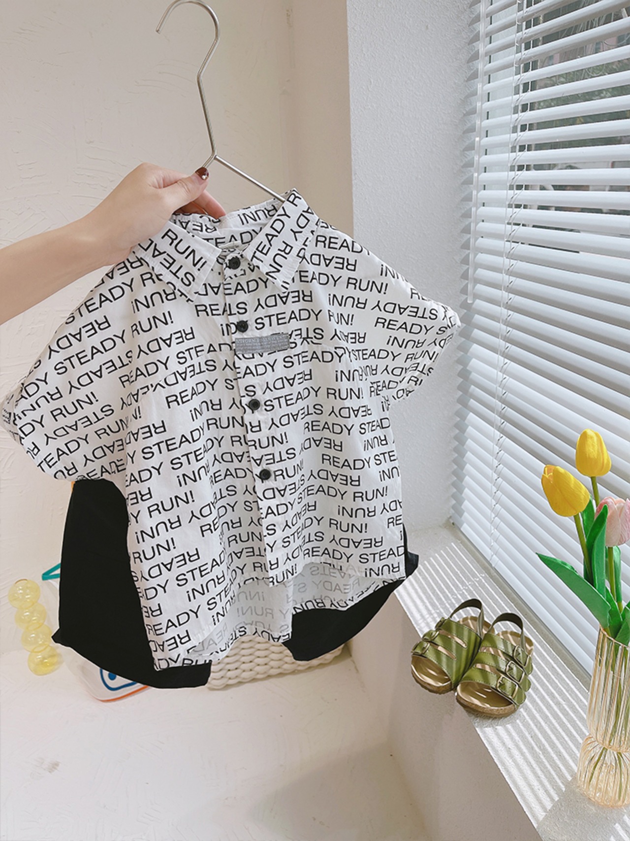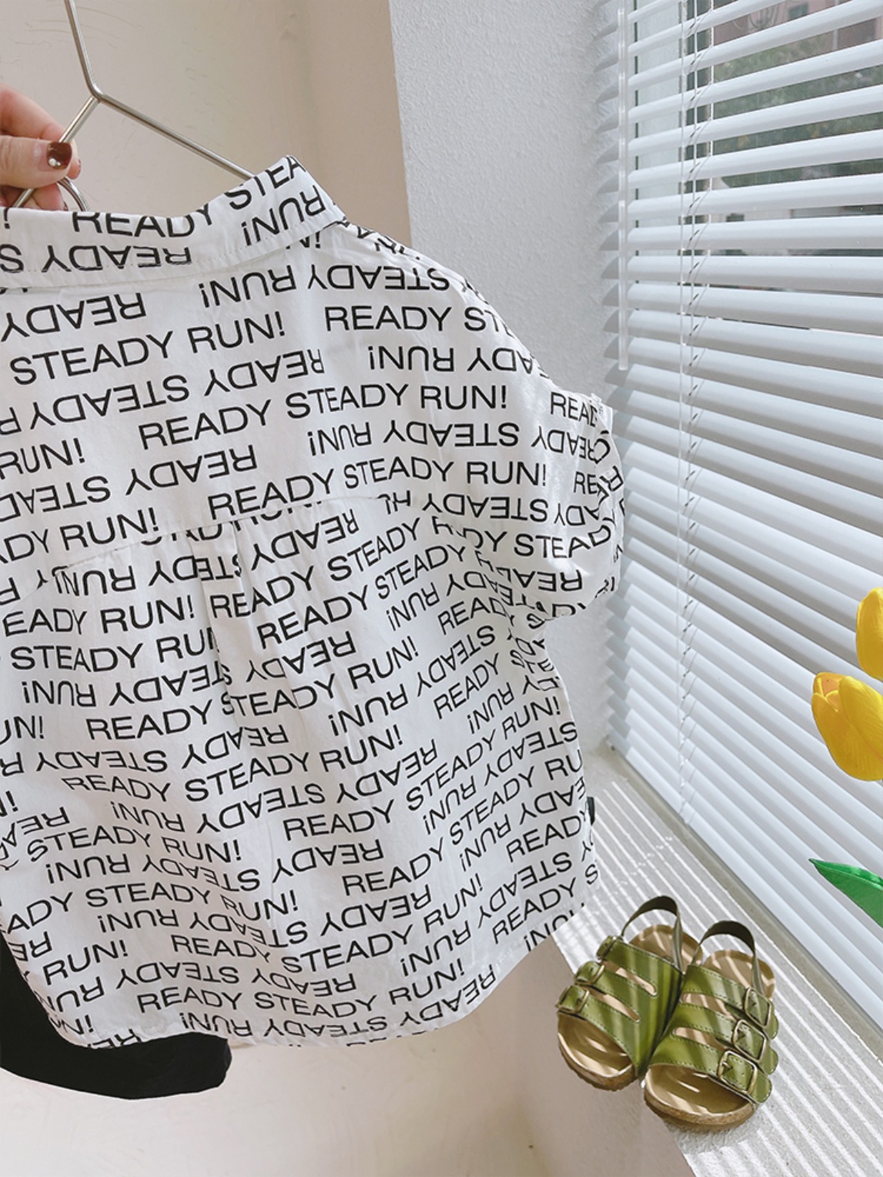 サマースタイルプリントルーズシャツ カジュアルホワイト コットン 夏物 4/12 春夏 SS 子供服 韓国風 mi0618588337638