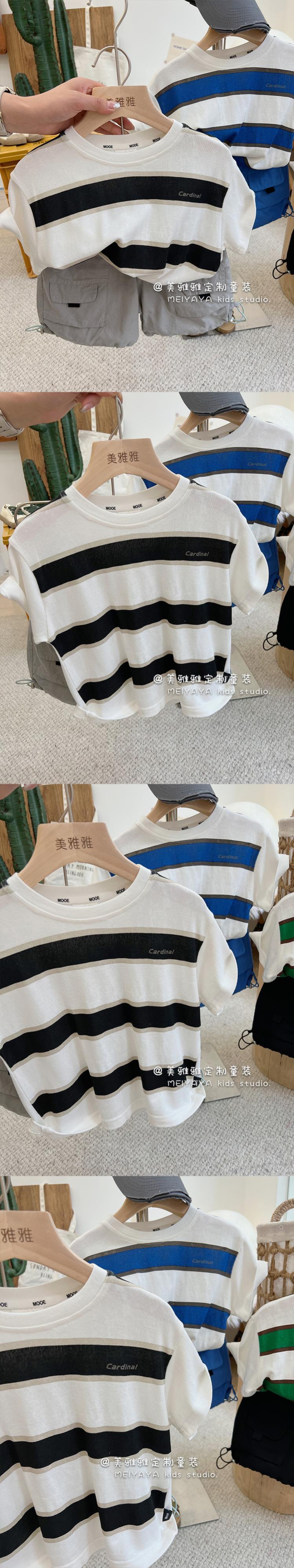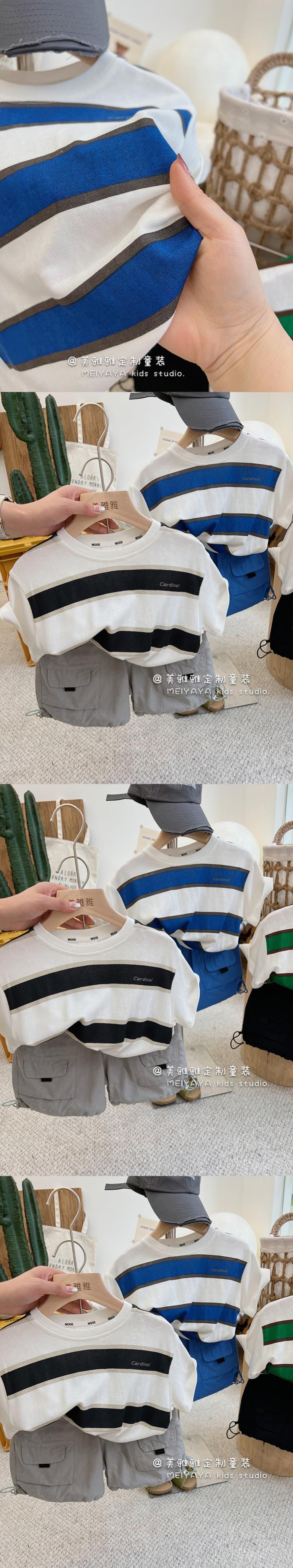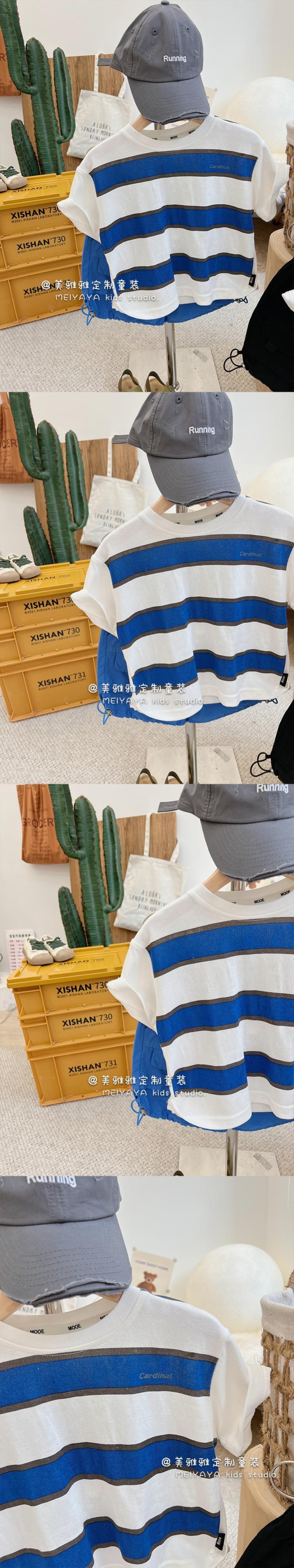 ストライプカラーラウンドネックTシャツ サマー 夏物 バックパック リュック Oネック 4/12 春夏 SS 子供服 韓国風 mi0651712313773