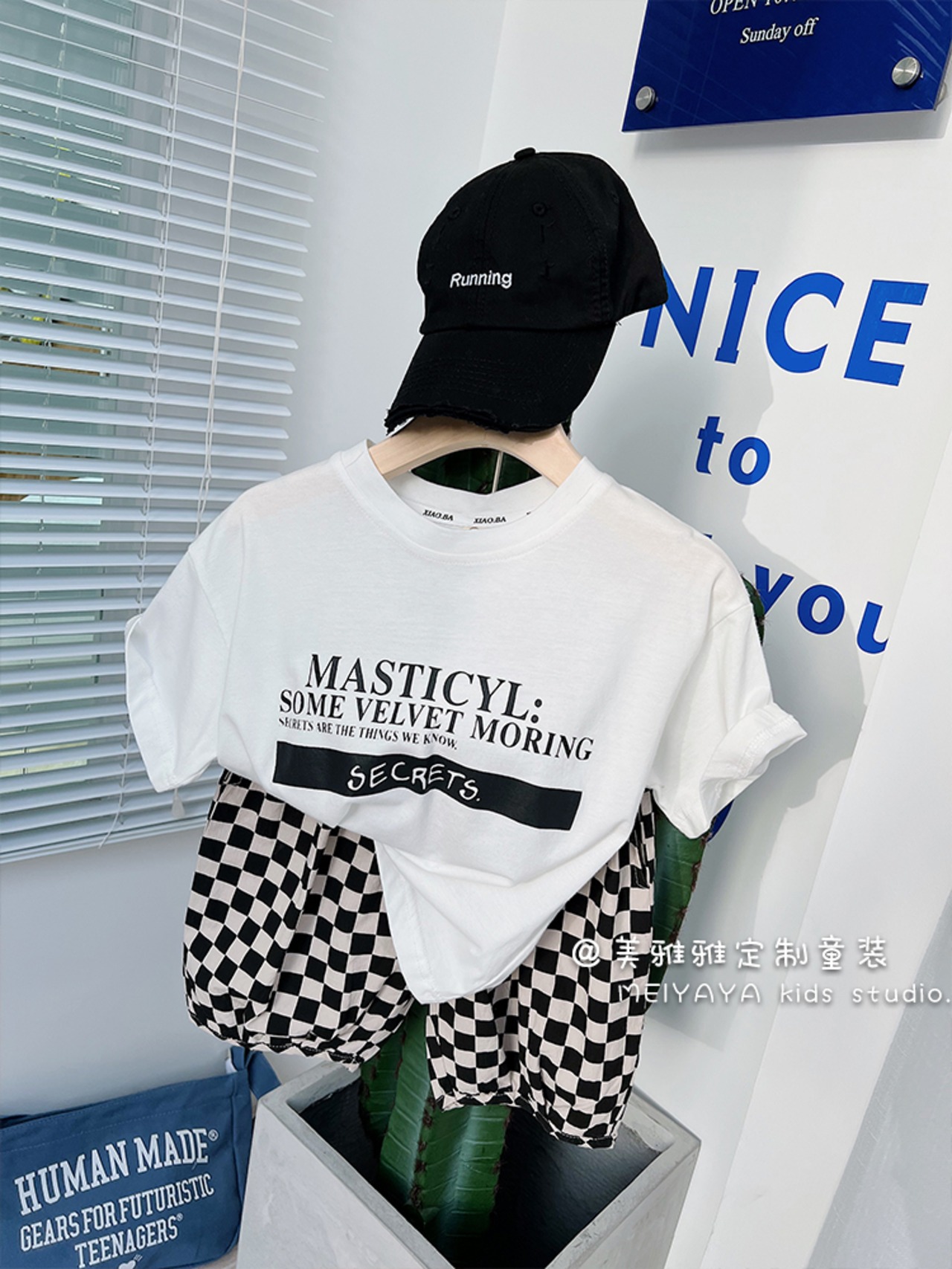 スタイルプリントラウンドネック半袖スリーブカジュアルサマー ショート ハーフスリーブ ストリート 夏物 Oネック 4/12 春夏 SS 子供服 韓国風 mi0618807278811