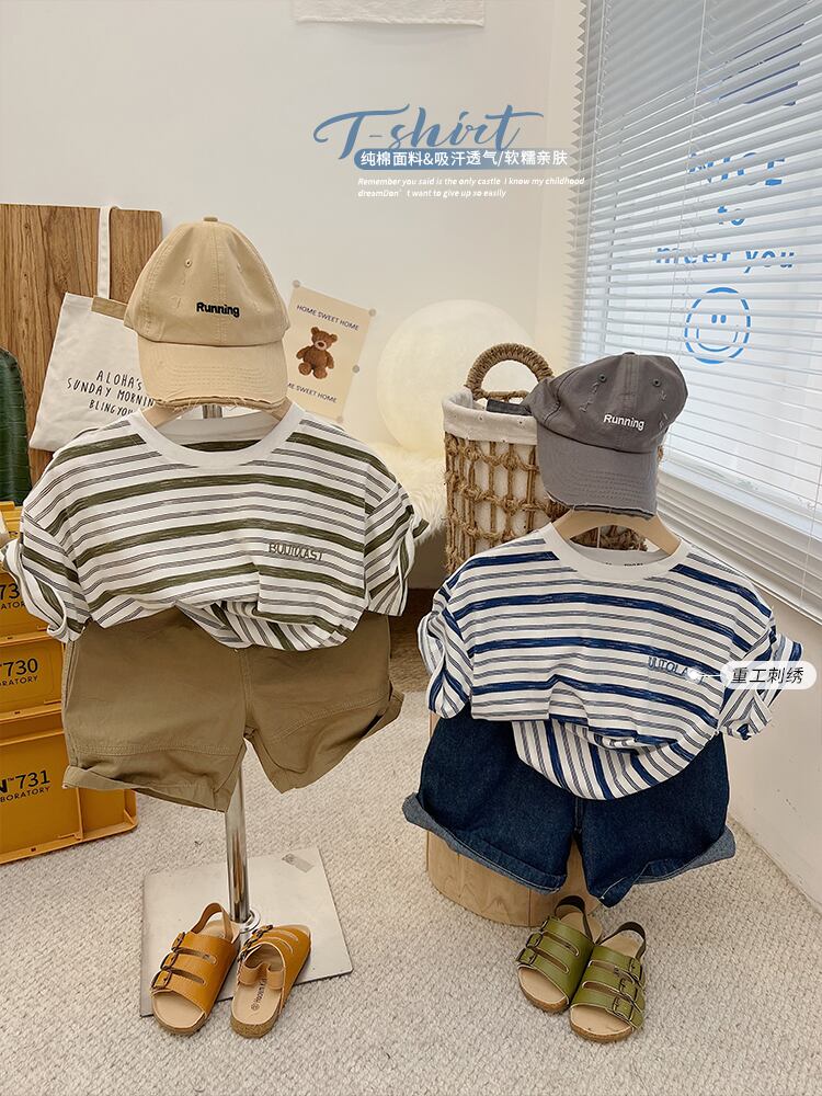 薄手サマーTシャツ ストライプ 夏物 4/12 春夏 SS 子供服 韓国風 mi061240927638