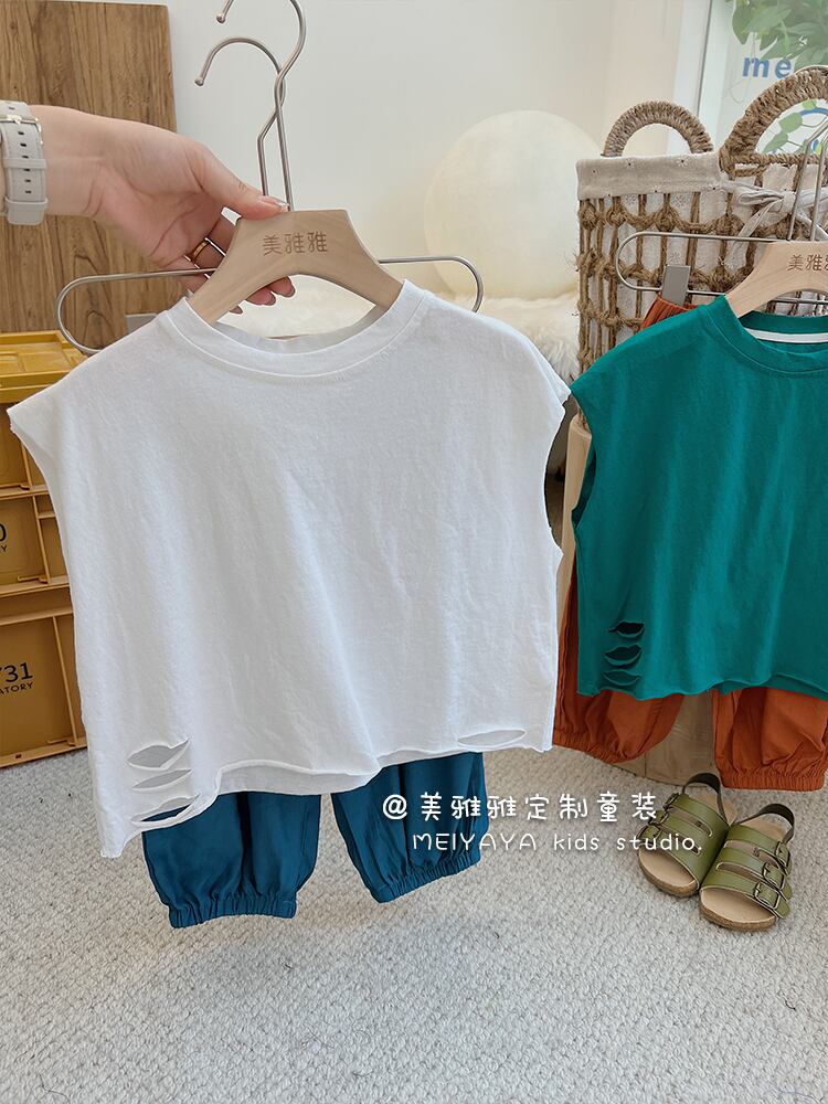 ラウンドネックノースリーブソリッド カラー Oネック ソリッドカラー 4/12 春夏 SS 子供服 韓国風 mi0621707850775