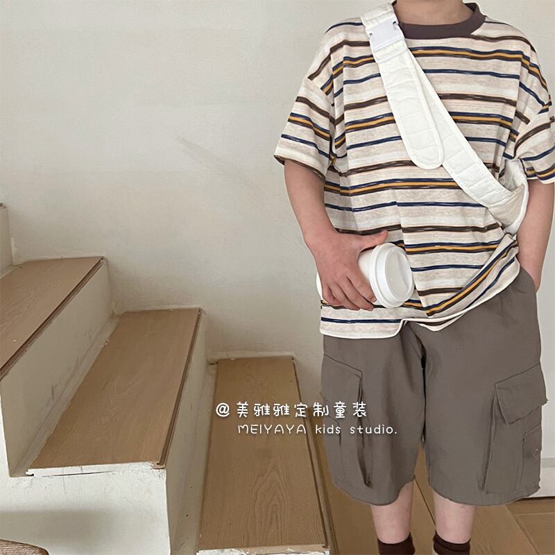サマーストライプニットショート コットン 半袖 ハーフスリーブ 夏物 4/12 春夏 SS 子供服 韓国風 mi0637796979047