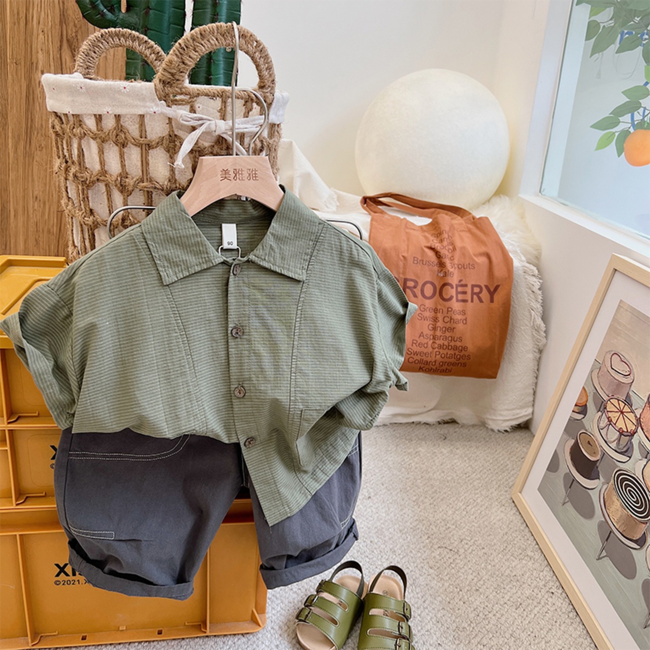 カジュアルパンツ シャツ 薄手サマートップス ラインクロップド 夏物 4/12 春夏 SS 子供服 韓国風 mi0627842289155