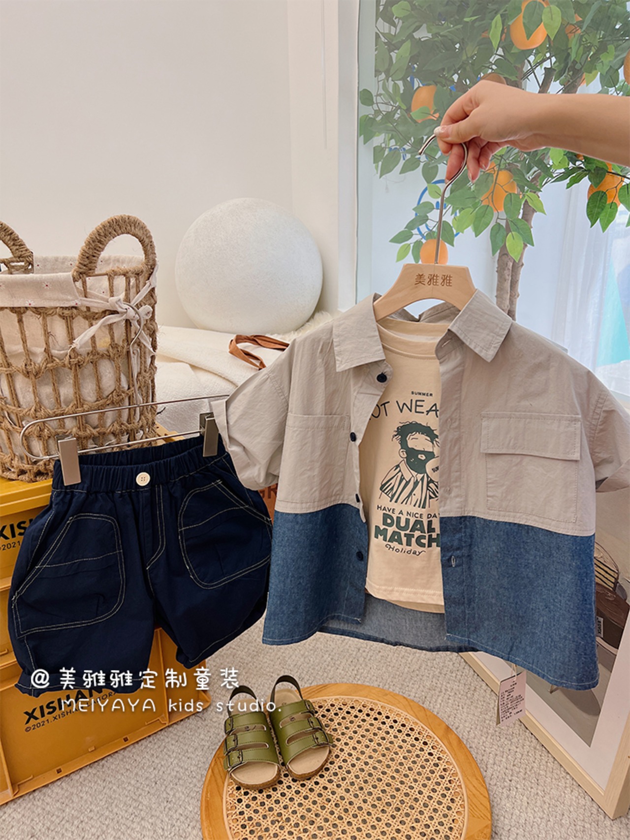 サマーカラーシャツ ブラックパンツ 夏物 4/12 春夏 SS 子供服 韓国風 mi0676156508847