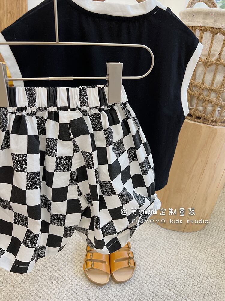 サマーカラー格子柄カジュアルパンツ 夏物 4/12 春夏 SS 子供服 韓国風 mi0657577361930
