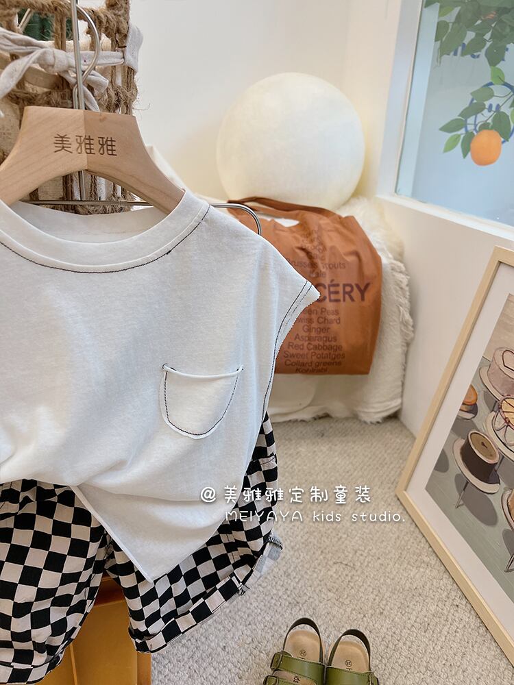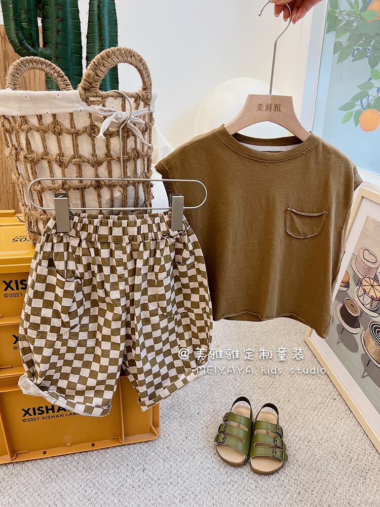 セット Tシャツ 格子柄パンツ サマー コットン 夏物 4/12 春夏 SS 子供服 韓国風 mi0647121210321