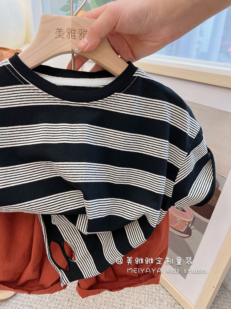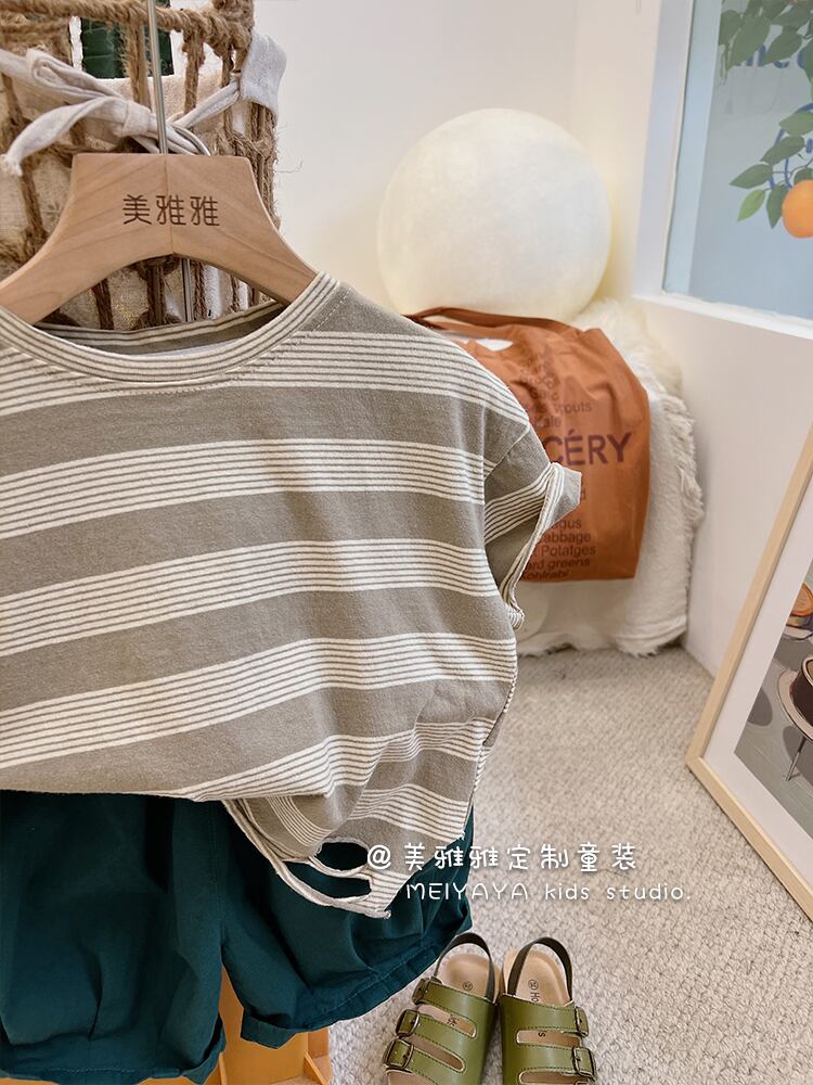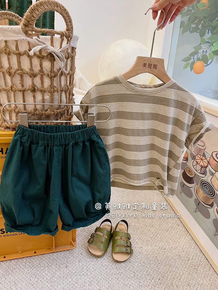 セット サマーストライプショーツ プルオーバー 薄手 夏物 ブルマー 4/12 春夏 SS 子供服 韓国風 mi0658708865142