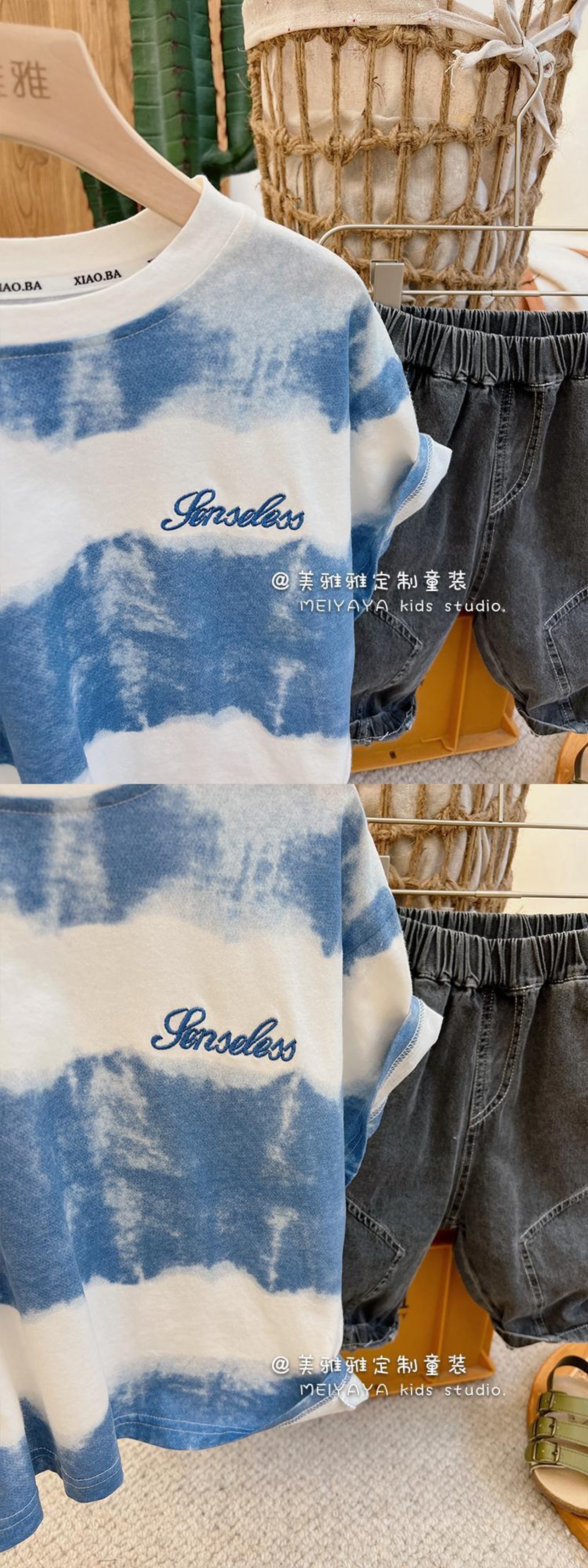 サマーラウンドネックジーンズ 夏物 Oネック 4/12 春夏 SS 子供服 韓国風 mi0686173493242